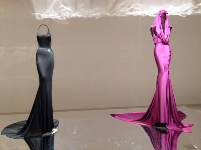 This is an excellent exhibition and I liked the way in which it was set out: a timeline of Alaȋa’s life and career, followed by groupings of his garments into categories such as Spanish Accent. I have no links whatsoever with the world of fashion,but was able to marvel, nonetheless, at Alaȋa’s genius. I also enjoyed the films of supermodels relaxing backstage: an insight into a world very few of us will ever visit.
