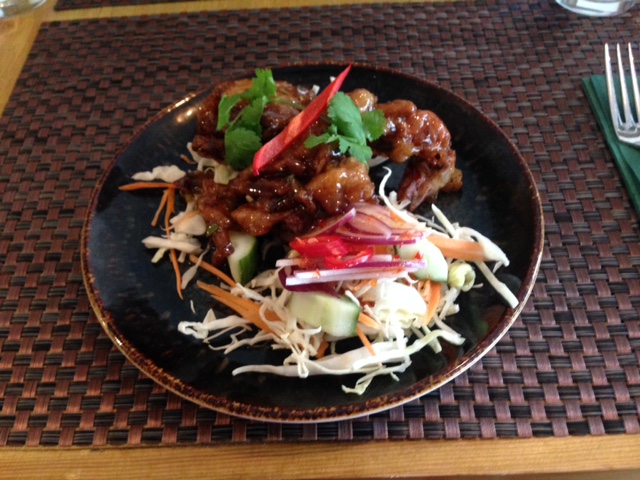 Pausing for a moment to take in our surroundings, it was easy to see why Thara Thai has become so popular so quickly (it was packed the night we were there). It’s a bright, airy space that has been tastefully decorated and furnished with comfortable seating. Excellent attention to detail is expressed through a beautiful selection of china and glassware – and I thought the house white wine very good. Most importantly, Thara Thai’s staff are knowledgeable about the menu – and made us feel incredibly welcome.