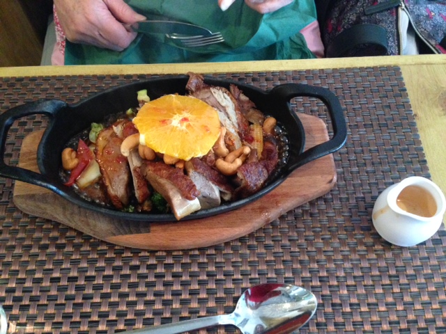 Marie fared equally well with her Honey Duck with Orange. Served on a sizzling hot plate, this collaboration of duck breast with special honey-glazed sauce, cabbage, cashew nuts and crispy shallots proved a winner. Cue more envious looks from our neighbours.
