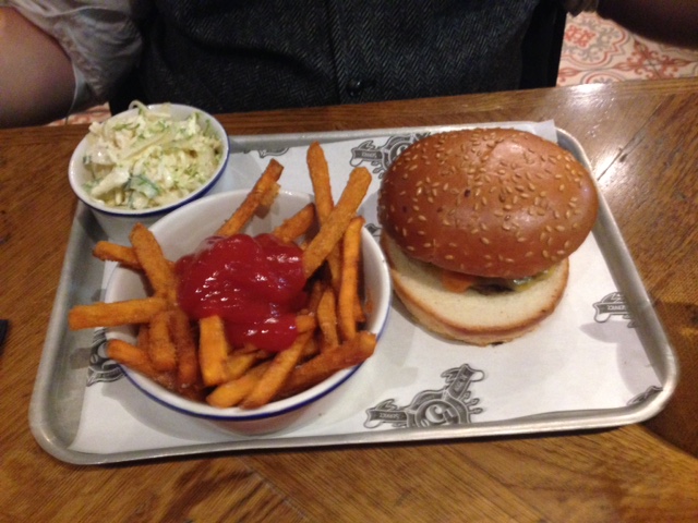 The salads looked quite tempting, but let’s be honest, we were in search of some good old-fashioned carbohydrate and our mains were chosen accordingly. I don’t eat meat, but if I was going to be tempted, a Fire Station burger would do the trick: the meat is handcrafted into two patties, piled with all sorts of delectable add-ons and served in seeded brioche buns. MB plumped for the Cheese Burger, with sides of Sweet Potato Fries and Tequila & Lime Slaw (I did say it was a carbs night). He loved both his Burger and the Fries, with the Slaw proving the only disappointment of the evening; having tried it myself, I can confirm that it tasted of absolutely nothing.