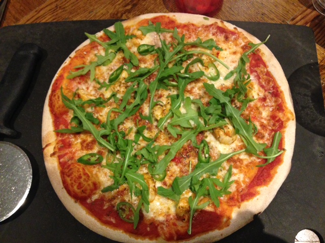 Very obligingly, the restaurant had agreed to make me a Peri-Peri King Prawn Pizza without the chorizo, and I loved my thin base with its peri-peri marinated crustaceans, enlivened with red chilli, marinated buffalo mozzarella and rocket; the prawns were plump and juicy and the filling had just the right amount of kick.